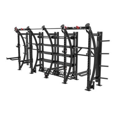 The MotionCage is a series of functional training system exercise stations that can be configured in several ways to best suit any facility’s layout and needs. Configurations can include a Squat Rack, a Renegade Station, Dual Hi-Lo Pulleys, a Boxing Station, a Rebounder Station, a Wall Target Station, and more — all with integrated accessory hooks for bands and resistance straps storage, and shelving for kettle bells and medicine balls. Fitness trainers can train individuals or entire classes on the MotionCage system. A sleek design and colorful finish invites gym-goers to jump on and "Start a ComMOTION".